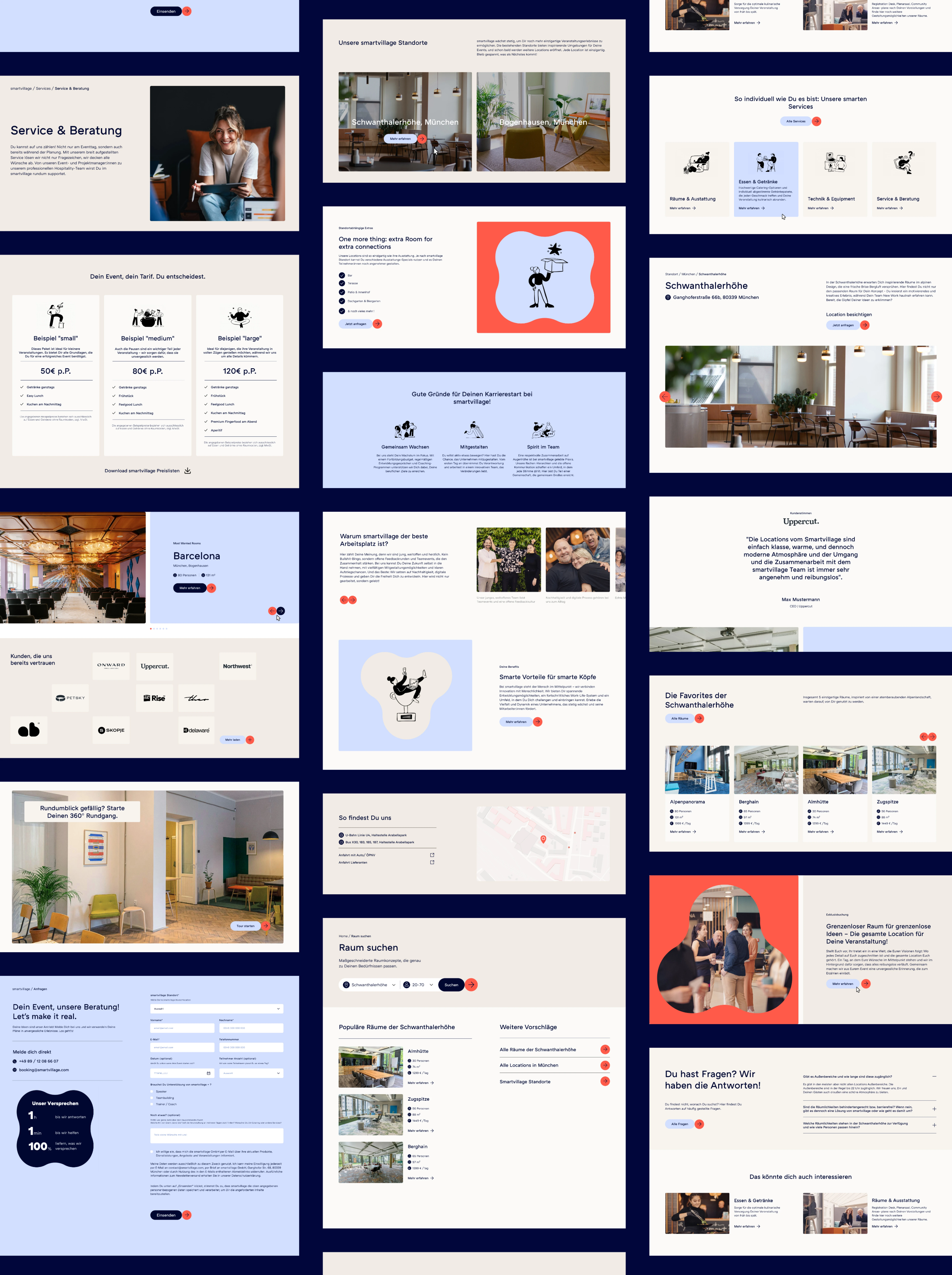 Die Website von smartvillage macht das Buchen der perfekten Location so einfach wie möglich. Klare Nutzerführung, intuitive Filter und eine strukturierte Darstellung der Räume und Standorte sorgen für eine reibungslose Navigation. Alle relevanten Informationen – von Raumdetails über Zusatzservices wie Catering oder Coaches bis hin zur direkten Anfrage – sind sofort zugänglich. Ein digitaler Auftritt, der inspiriert und konvertiert.